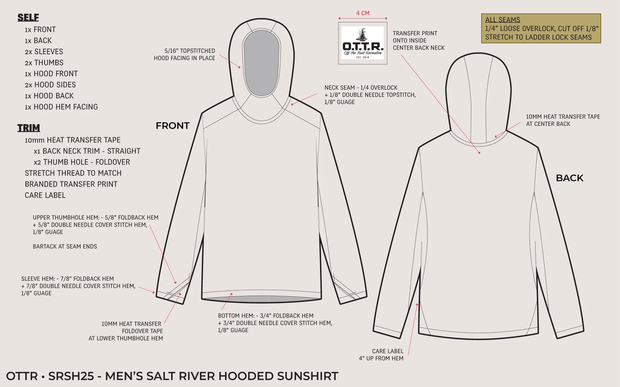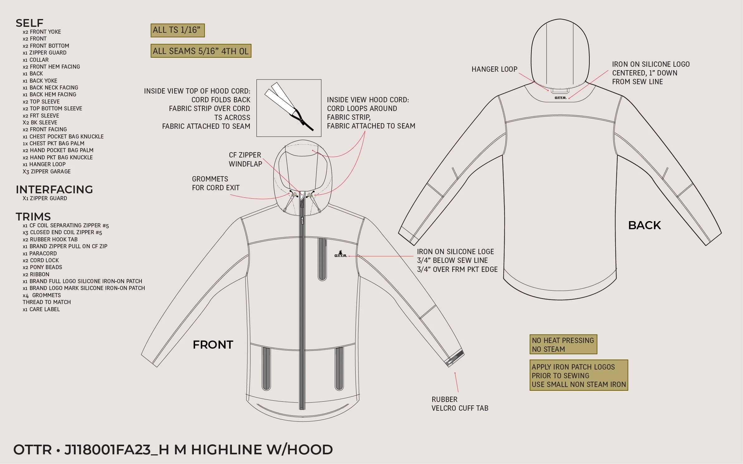 With David Parrish - owner of Off The Trail Recreation I’ve helped with multiple outerwear garments such as soft-shell jackets, sun shirts, and rain coats - in men and women’s styles. Over the years my work has included patternmaking, tech pack development, grading, printed marker-making, and print development.